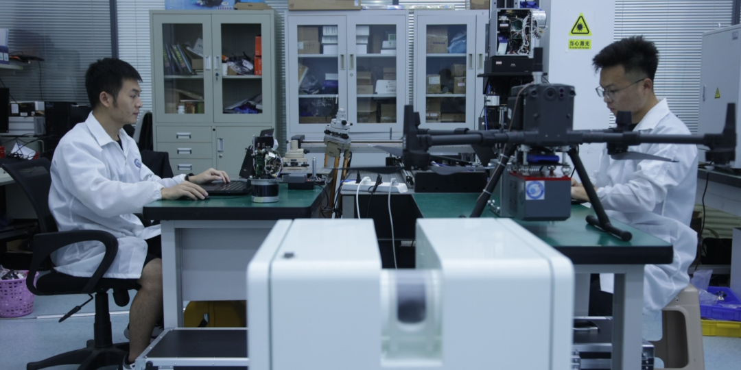技术人员正在进行高精度机载激光雷达研发