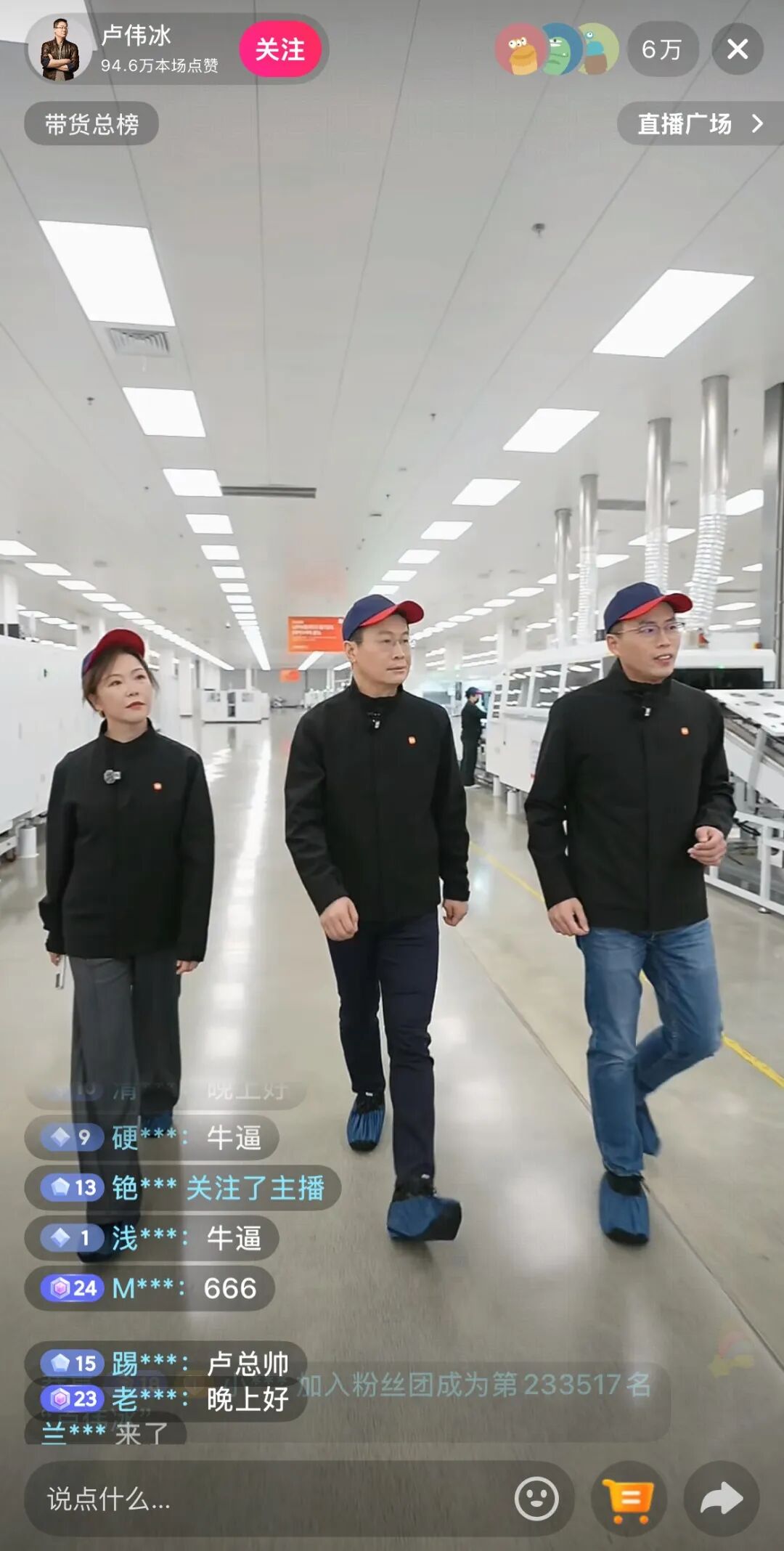 12月20日晚8点,小米集团合伙人、总裁卢伟冰,副总裁、首席营销官许斐,大家电部总经理单联瑜等高管共同在光谷直播,带观众“云逛”小米智能家电工厂。