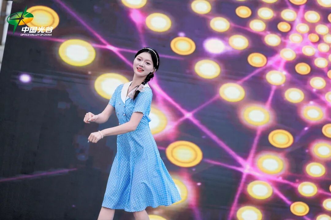 上午9点,活动正式启动。沿光谷四路布置的主舞台区以空轨为背景,科技感十足。鼓舞《幸福中国一起走》、湖北民歌《龙船调》、杂耍《孙悟空》、舞蹈《只此青绿》及手势舞《歌唱祖国》等多元文艺节目先后上演,现代与传统的交响让现场居民直呼“热闹好看”。