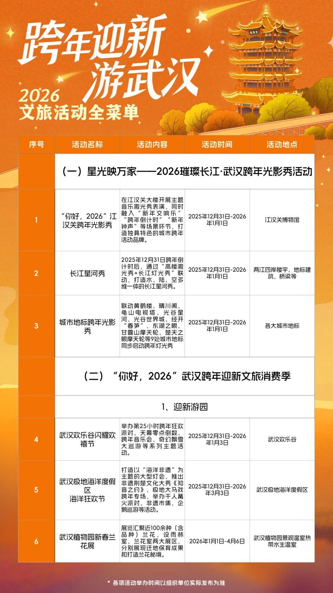 新年进入倒数时刻,大家计划好元旦行程了吗?以“跨年迎新游武汉”为主题,武汉官宣了120+文旅活动!
