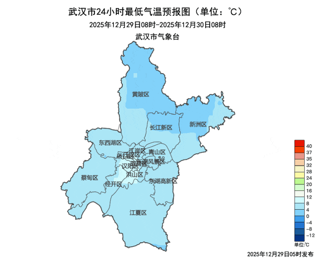天气预报显示,预计12月31日至2026年1月1日,武汉市有大风降温雨雪天气过程,大部地区平均气温下降7~9℃,提醒市民朋友们注意添衣保暖。