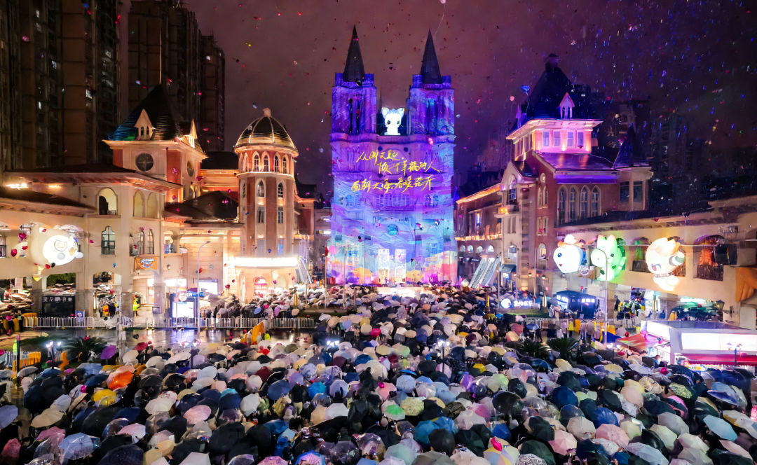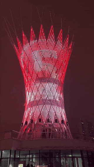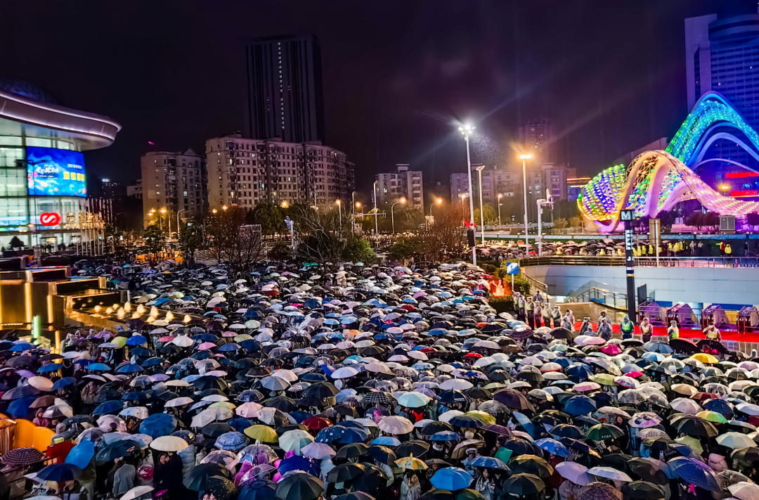这一夜,光谷星河广场化身为梦幻舞台,上演了如星河倾泻般的光影盛宴。灯光艺术与科技美学融合,建筑立面流光溢彩,视觉效果震撼,吸引众多市民观看。