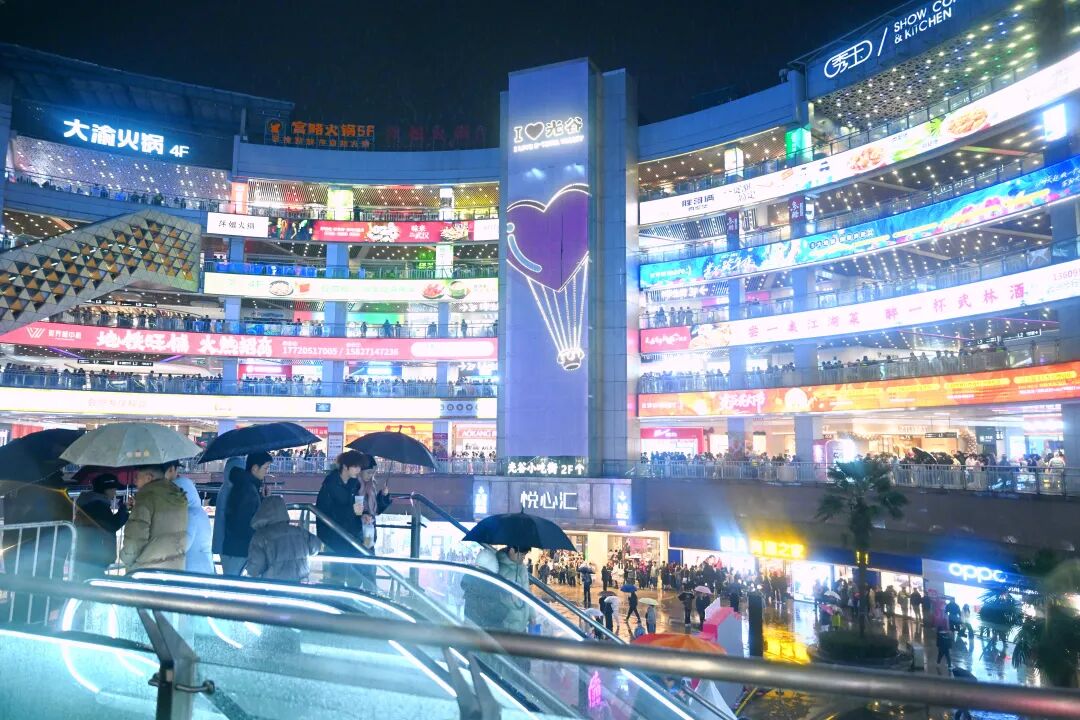 位于光谷中央生态大走廊东侧的武汉大悦城商圈,也成了众多市民的室内跨年聚集地。当晚,武汉大悦城举行“次元无界•跨年音乐盛典”,人们穿着红色主题服装,边看国风表演边逛街购物,还有一些青年在照相馆拍摄新年写真,迎接2026。据介绍,跨年夜商圈总客流近9.1万人次,同比增长11.6%。