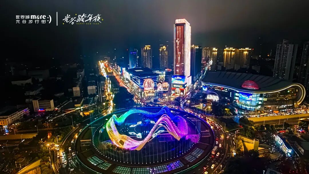 同一时间,光谷中央生态大走廊、伟星星悦广场等地设置倒计时点,现场还有歌舞表演、电音派对与集体许愿倒计时等各类活动,跨年氛围火热。