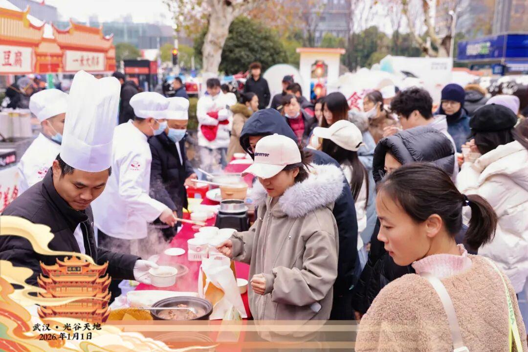光谷天地举办的“2026元旦煨汤江湖·食韵光谷美食节”也吸引了大量市民。活动现场汇聚老北京雪梨、长沙臭豆腐、台湾鸡翅包饭等各地风味,更设有煨汤专区,藕汤、鸡汤、牛肉汤香气四溢,不少游客驻足品尝。