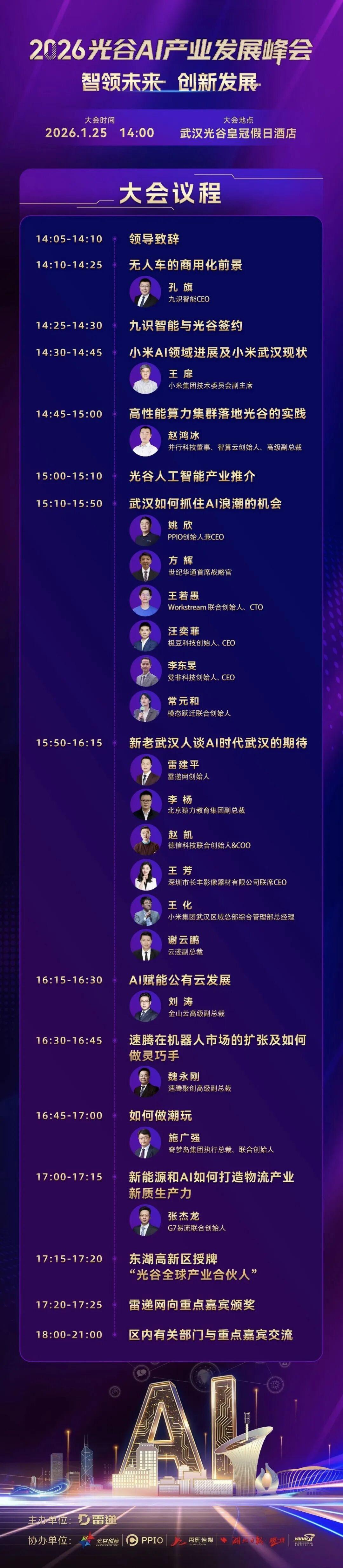1月25日,2026光谷AI产业发展峰会将在光谷召开。本次峰会旨在搭建高端对话平台,推动人工智能领域的思想碰撞、资源对接与产业合作。