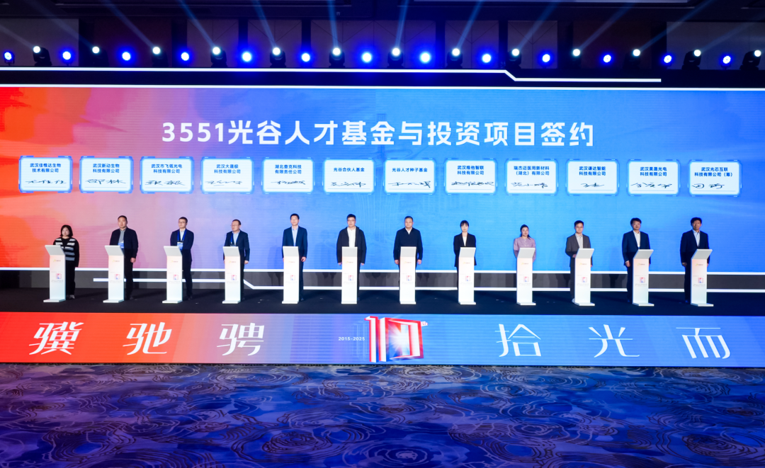 会上,武汉市飞瓴光电科技有限公司等10家企业与光谷合伙人基金、人才种子基金签约。