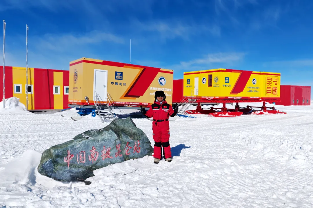 中国南极昆仑站,中建三局团队成员与身后的极地科考增压建筑