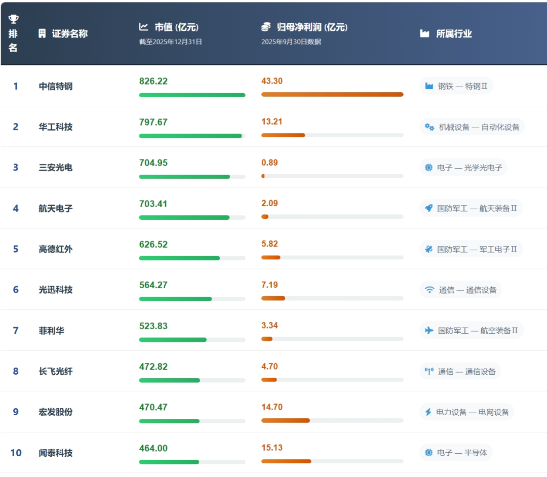 日前,湖北知名媒体账号“观一线”梳理了截至2025年底湖北A股市值前十强。其中,光谷4家上榜,分别为华工科技、高德红外、光迅科技和长飞光纤。