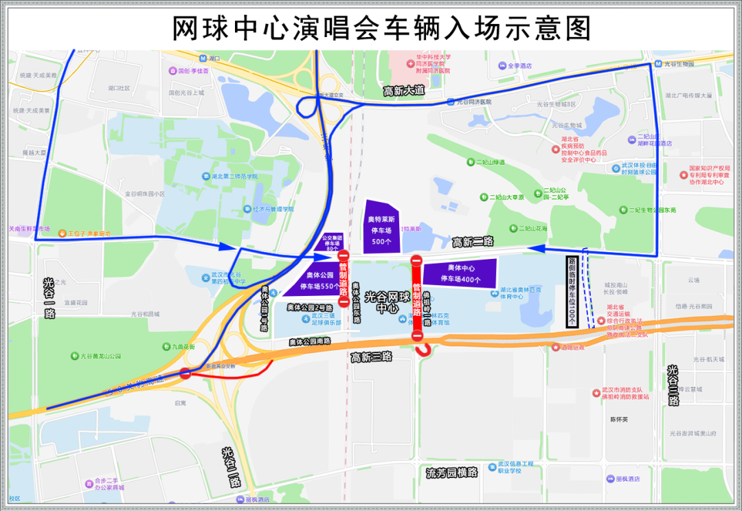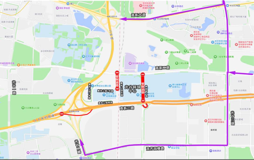 为确保活动期间周边道路交通安全、有序,根据交通流量及安保工作需要,武汉市公安局东湖新技术开发区分局交通管理大队将对部分道路实施临时交通管控措施。具体如下: