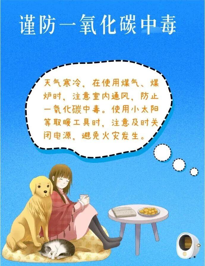 1.注意防寒保暖,科学取暖,远离易燃、易爆等有害物质,注意开窗通风,加强取暖用煤用气用电用火安全检查,严防一氧化碳中毒和火灾事故发生。