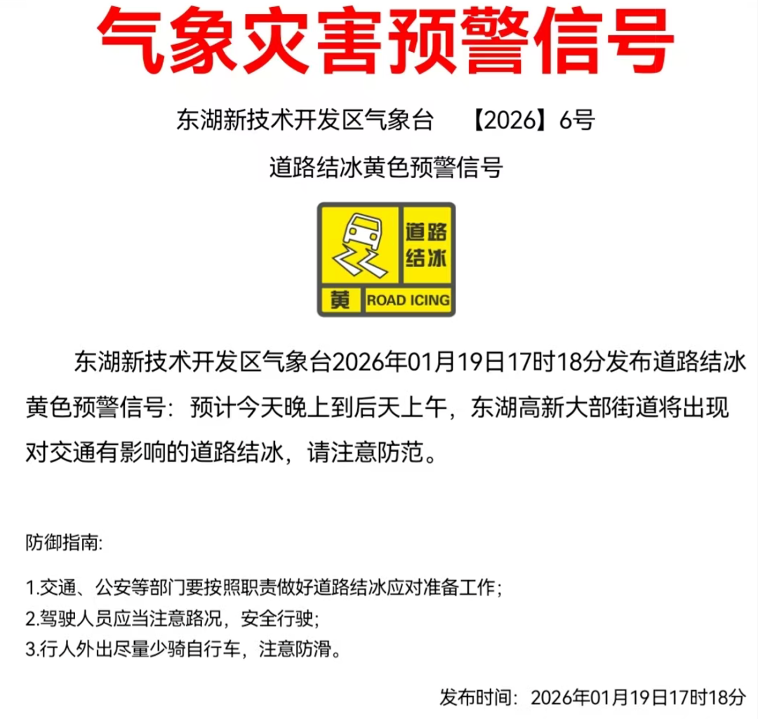 东湖高新区教育局提示各位师生、家长:出行请务必慢行,注意防风防滑;及时添衣,做好保暖。