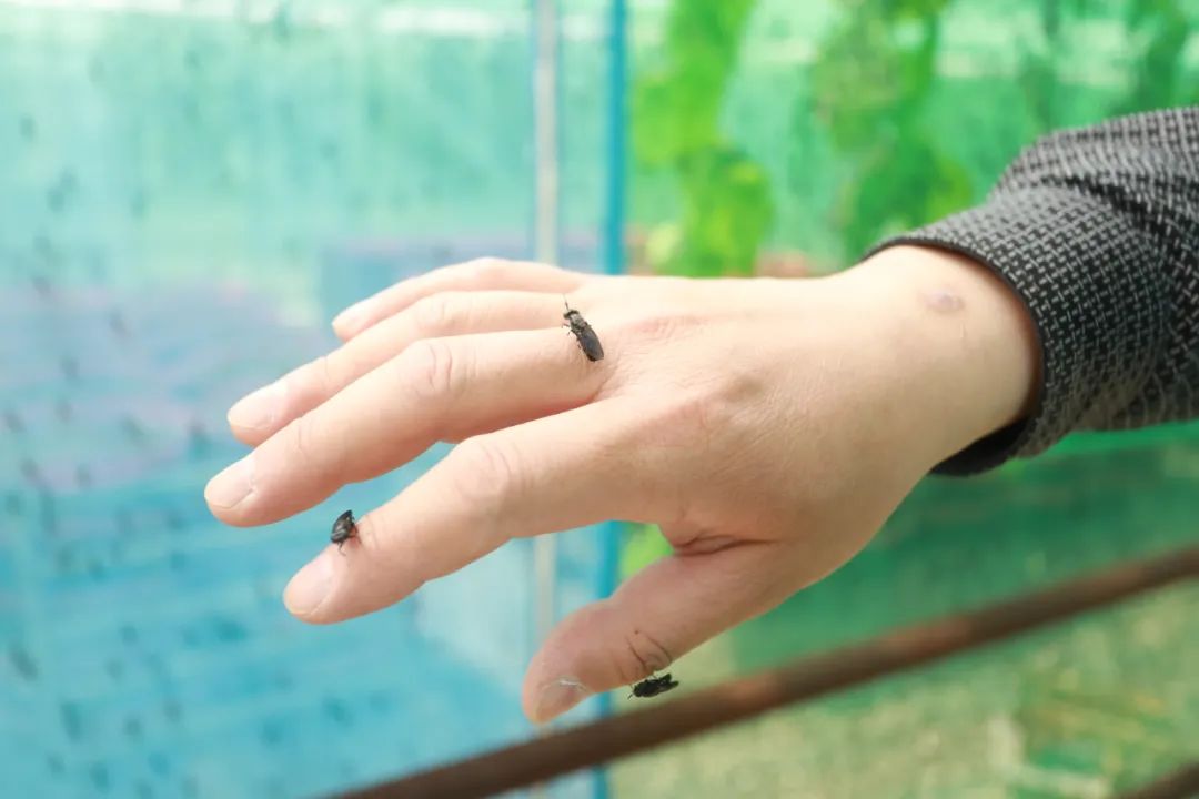 教师周燕代子正带着学生进行黑水虻幼虫资源化利用实验,这个身材娇小、面容清秀的姑娘正蹲在一个装满虫子的货箱前,准备“实验原料”。