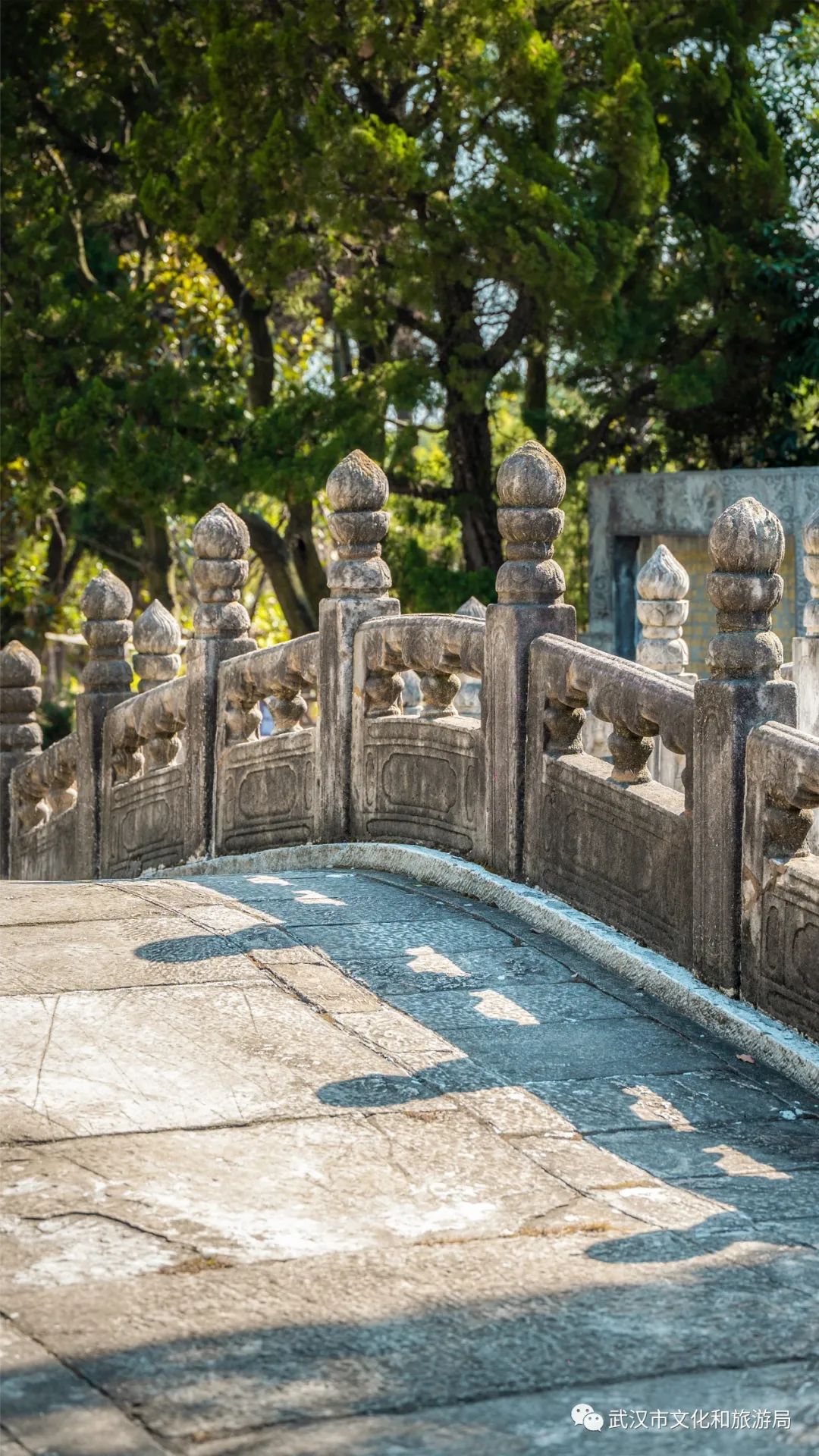△昭园内的金水桥,石柱上的焦黑,可能是张献忠攻打武昌时放火焚烧所致