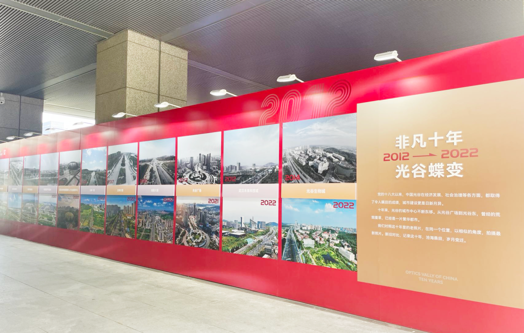 为庆祝党的二十大胜利召开,深入学习宣传贯彻党的二十大精神,展示党的十八大以来光谷的飞速发展、巨大变化,东湖高新区举办的“献礼二十大,光谷这十年”展览,今日在光谷公共服务中心(1号楼)正式对公众开放。