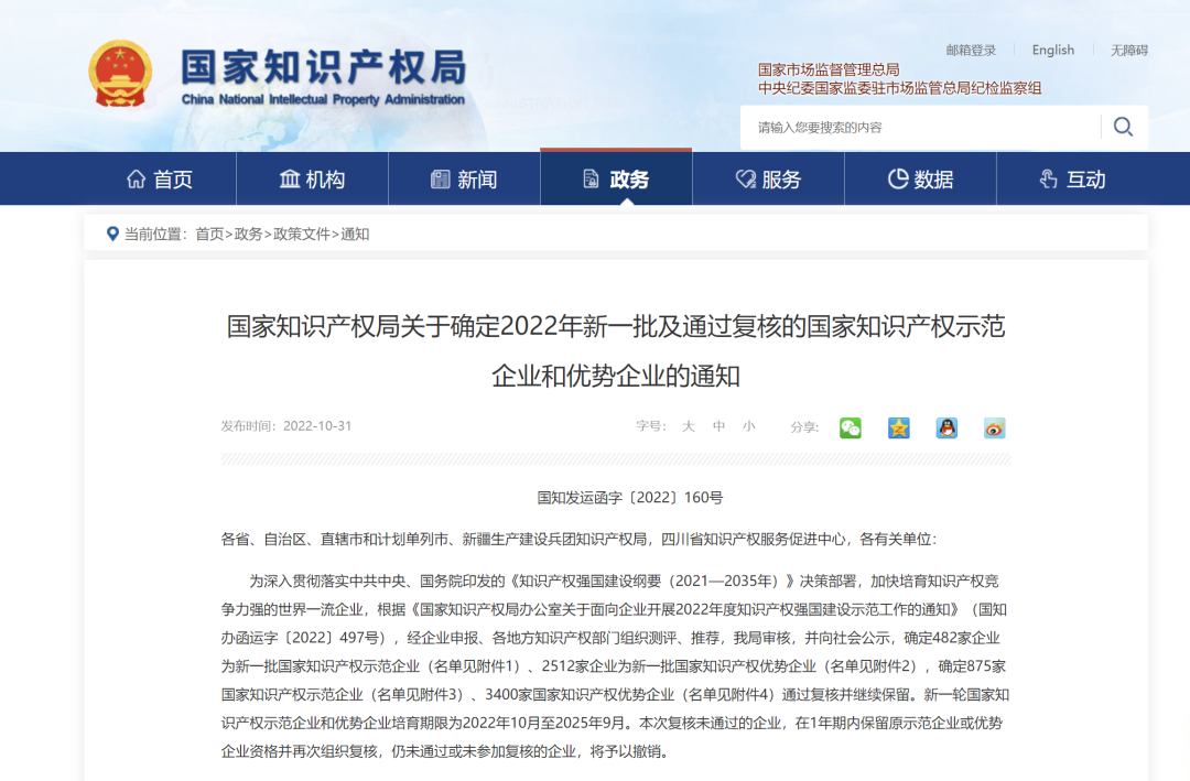 日前,国家知识产权局发布2022年新确定的“国家知识产权示范企业”及“国家知识产权优势企业”名单。
