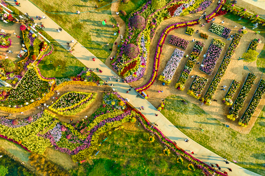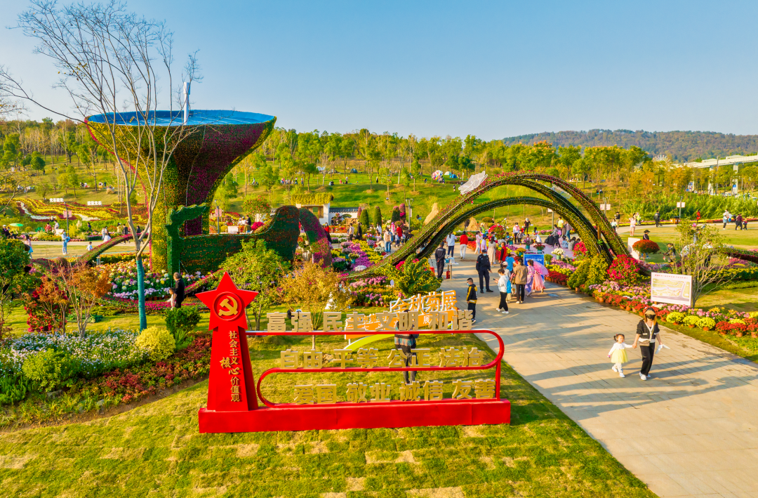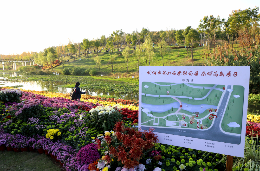 光谷菊展位于高新大道与光谷四路交汇处、鸡公山公园南侧,展区总面积约3公顷。