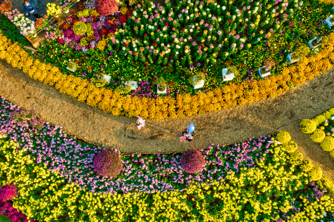 其中,高9米“光之塔”最吸引目光。这一扎景由彩菊飘带汇聚组合而成,以光谷标志性建筑“马蹄莲”为灵感,将“光”与“菊”两大元素相融合,代表汇聚一起的光谷力量。