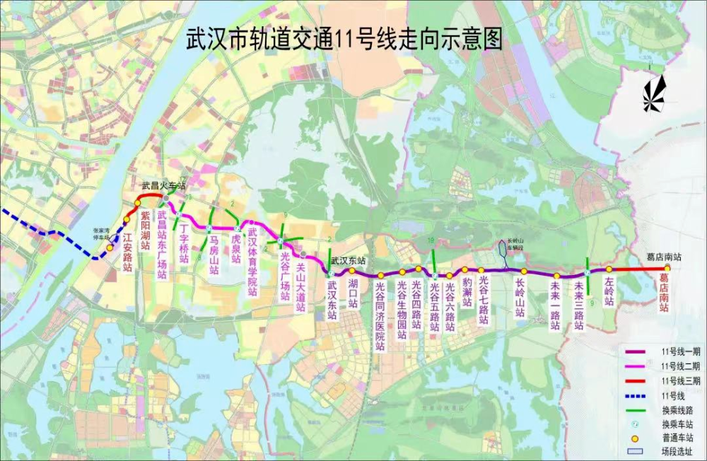 武汉地铁11号线二期工程是武汉市轨道交通第三期建设规划线路,工程起自11号线东段一期武汉东站,终点为武昌火车站,途经东湖高新区、洪山区、武昌区。线路全长12.489公里,设站7座,分别为武昌火车站、丁字桥站、马房山站、虎泉站、体育学院站、光谷广场站和关山大道站。