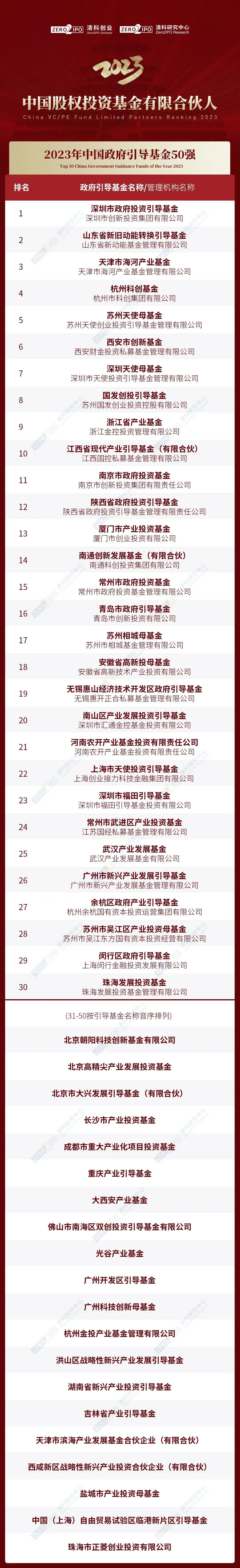 清科研究中心综合考量上千家机构有限合伙人的募资、对子基金的投资和退出等情况,通过科学的评选标准体系,评选形成“2023年中国政府引导基金50强”“2023年中国股权投资市场机构有限合伙人50强”两大主榜单,以及“2023年中国省级政府引导基金10强”“2023年中国地市级政府引导基金30强”“2023年中国区县级政府引导基金30强”等系列子榜单。