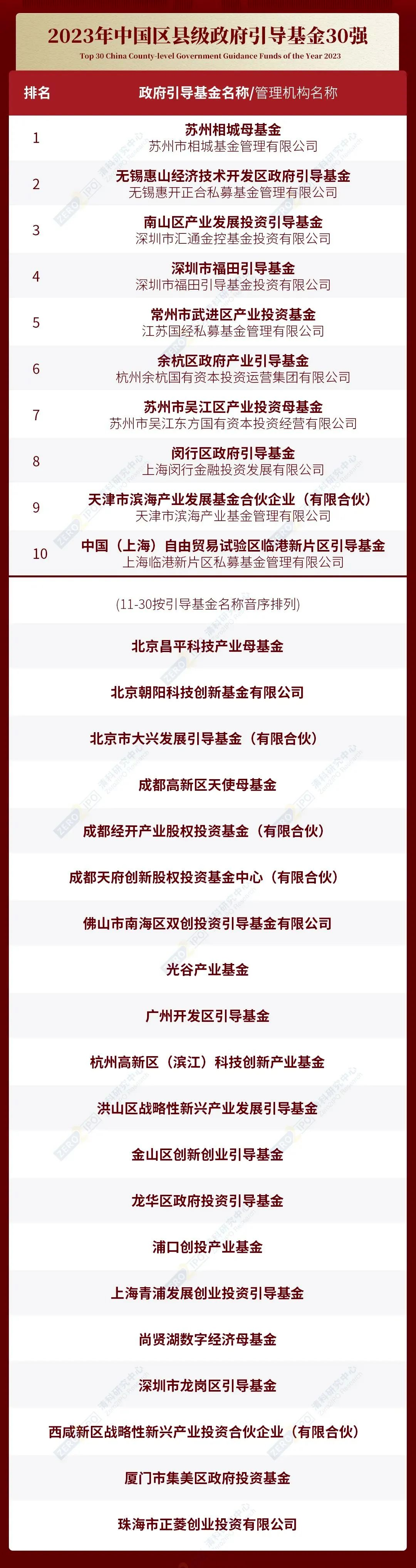 日前,第十七届中国基金合伙人峰会在深圳南山举办,会上正式揭晓了2023年中国股权投资基金有限合伙人榜单,光谷产业基金蝉联“2023年中国政府引导基金50强”和“2023年中国区县级政府引导基金30强”两大奖项。
