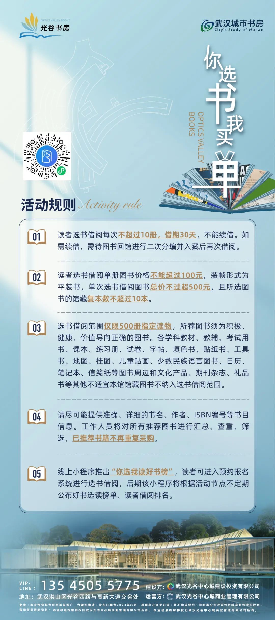 值得一提的是,在光谷书房·中央生态大走廊分馆首次办理读者证的用户可以参与“你选书我买单”活动。