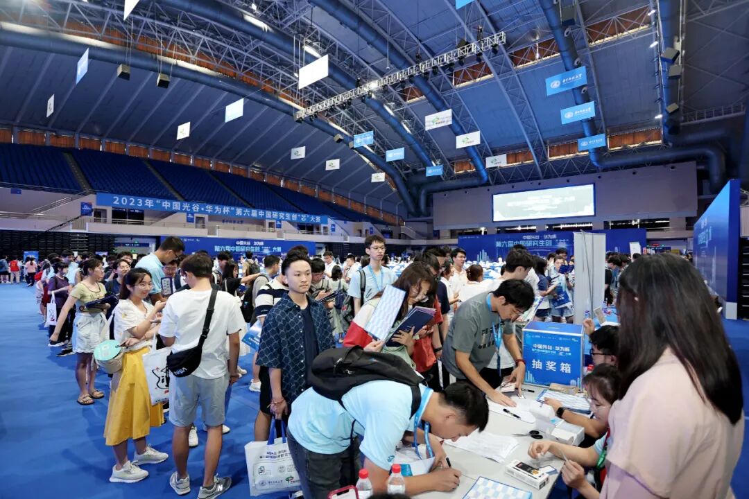 现场人潮涌动,研究生们拿着简历,穿梭于摊位前。企业热情讲解,纷纷抛出橄榄枝,为了吸引更多人,还设置了抽奖箱。主办方更是在会议通知中提醒学生:多带简历。