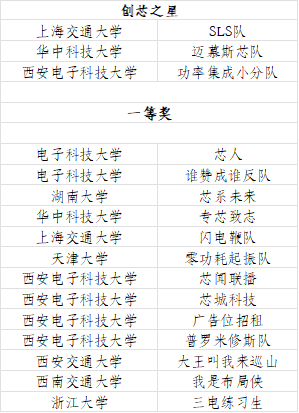 最终,来自上海交通大学、华中科技大学、西安电子科技大学的3支队伍获评“创芯之星”。来自电子科技大学、湖南大学等高校的13支队伍获一等奖。