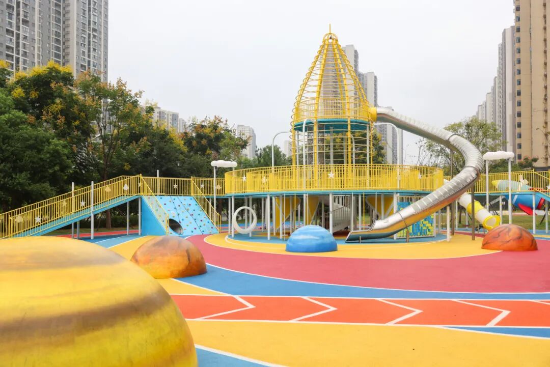 “时光序曲”主题公园于2024年6月建成,紧邻地铁11号线湖口站,由探索乐园和潮玩乐园2座子园组成,占地超1.6万平方米。公园以儿童友好为主题,设有吊椅、树桩坐凳、红色CITY滑梯巴士等休闲设施。