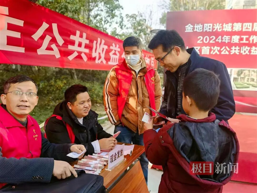 “新年头天拿分红,讨了一个好彩头。”2025年元旦,家住东湖高新区金谷明珠园小区、金地阳光城小区的业主们,每户领取了一份意外的福利——现任业委会给每户业主发放了100元的“红包”,或者是大米、食用油组合,或者直接是现金。