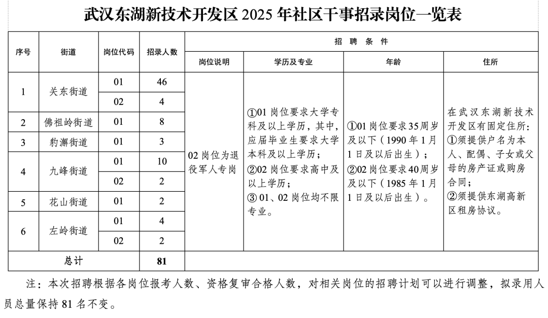 全区拟招聘社区干事81名。