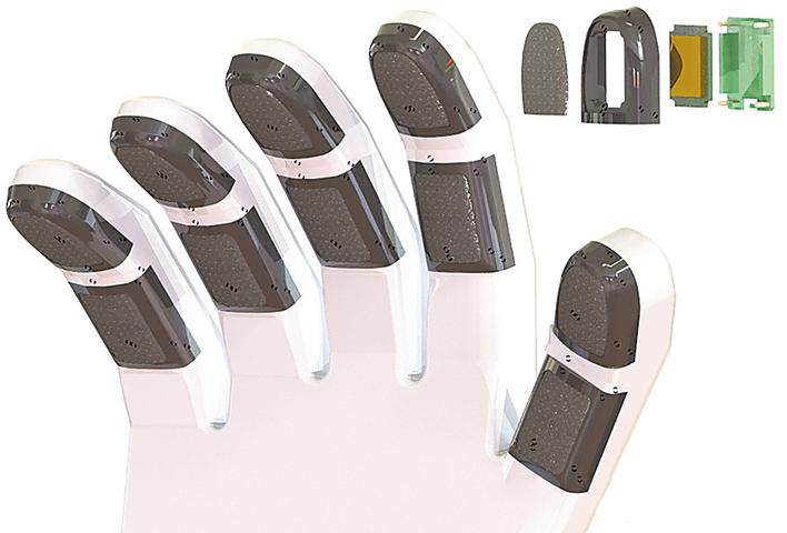 目前,国内有5家同类型企业。韩克平介绍,华威科的核心竞争力在于从装备、材料、设计到算法,为客户提供全产业链服务。“现阶段,很多机器人产品是不成熟的,可能边做边改。我们掌握全产业链条,能根据用户需求,给出定制化产品。”他举例说,有家客户对灵敏度要求高,华威科就把电子皮肤的感知度精确到1克;有客户对握力要求高,华威科就把那批次产品的力量提升到每根手指2千克,一只机器手可提起一袋10公斤大米;除重量外,电子皮肤还可检测物体是否滑动,确保触觉灵、抓取稳。