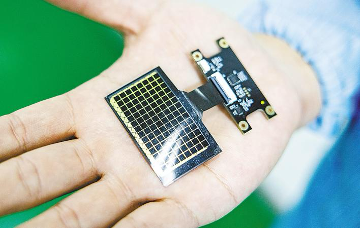 “看上去不起眼,但就这指甲盖大小的皮肤,集成了105个感应点,一只机器人‘灵巧手’可以拥有1000个以上感应点。”华威科生产基地工程总监韩克平介绍,华威科突破关键材料制造工艺,感应点面积仅1平方毫米。