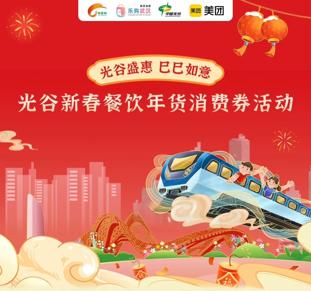 通过美团App或大众点评App搜索“光谷新春消费券”参与抢券。