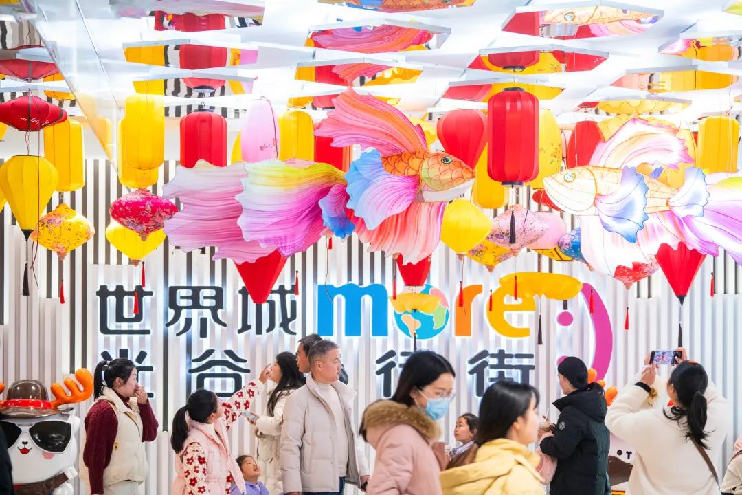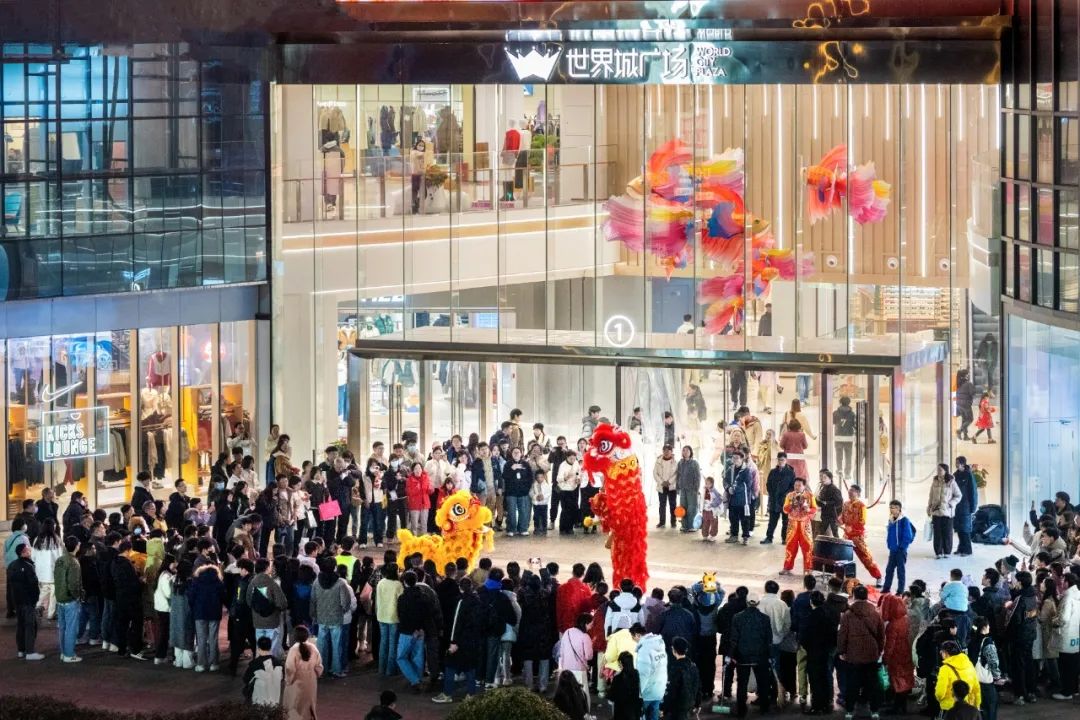光谷世界城相关负责人介绍,商圈周末单日客流已达30万人次,同比增长50%。春节前夕,他们还组织了电音派对、网红驻场、醒狮表演等活动,让市民感受浓浓年味。
