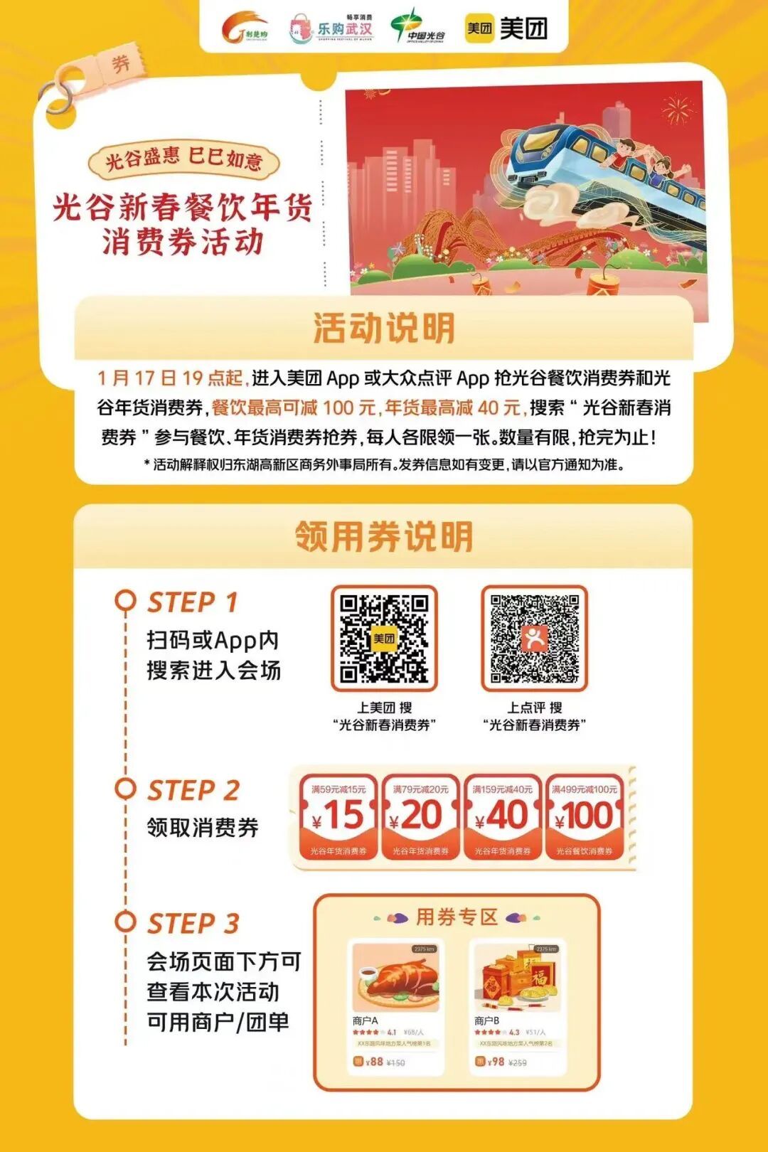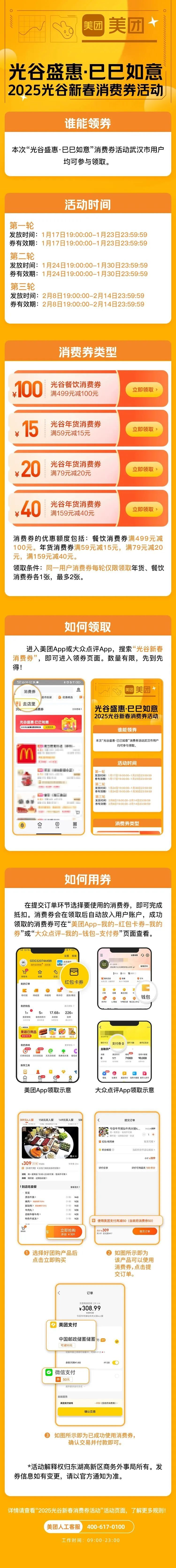 今晚(1月24日)19点,2025光谷新春消费季第二波消费券即将开抢,消费者可通过美团App或大众点评App搜索“光谷新春消费券”参与抢券。