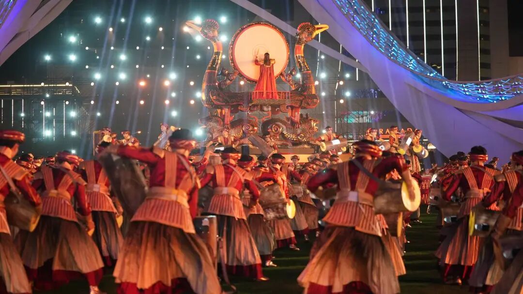 这次春晚,让光谷广场更出圈,灯光亮起时,仿若现实版“流浪地球”的“宇宙行星发动机”。这里,将作为武汉分会场开场亮相的重头戏,虎座鸟架鼓击响豪迈之音,众人琴舞演绎古今文化碰撞。