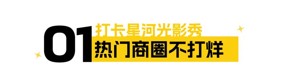 活动内容:光影秀将以星河广场的雕塑和周边建筑为载体,通过灯光的变幻和色彩的搭配,营造出浓厚的节日氛围和科技感十足的场景。高科技的光影技术与艺术的完美融合,带给你前所未有的视觉冲击!
