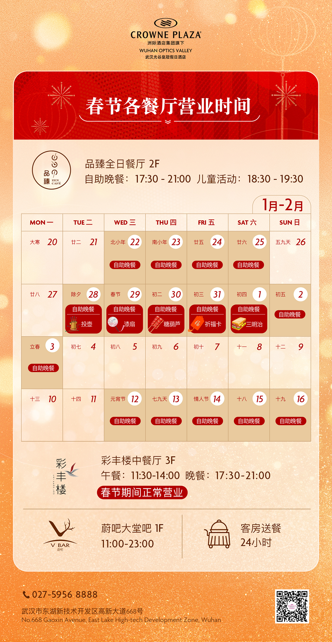 酒店房餐活动:即日起至2.27