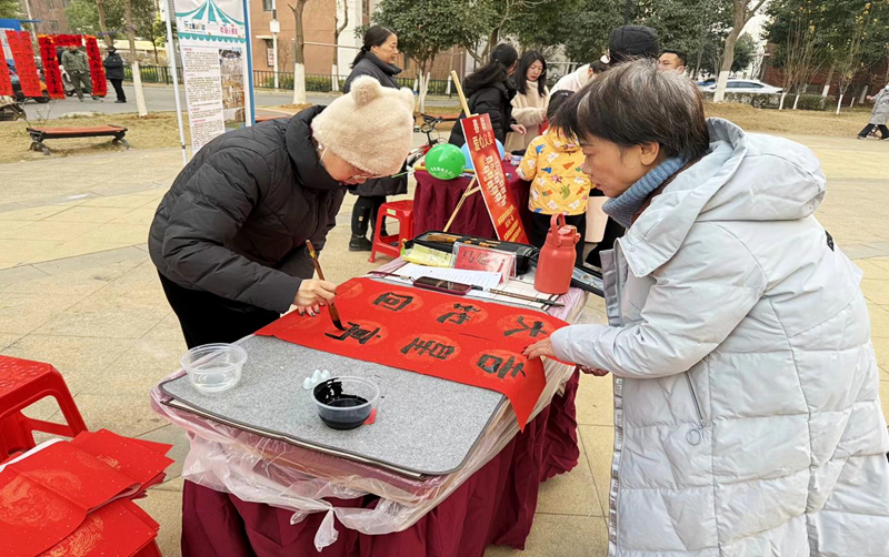 九峰街道清和里社区新春嘉年华活动上,写春联、猜灯谜、投壶等项目吸引居民踊跃参与。其中,光谷伢在书法老师的指导下,用行书、楷书、隶书等写下蛇年祝福,传承新年文化。
