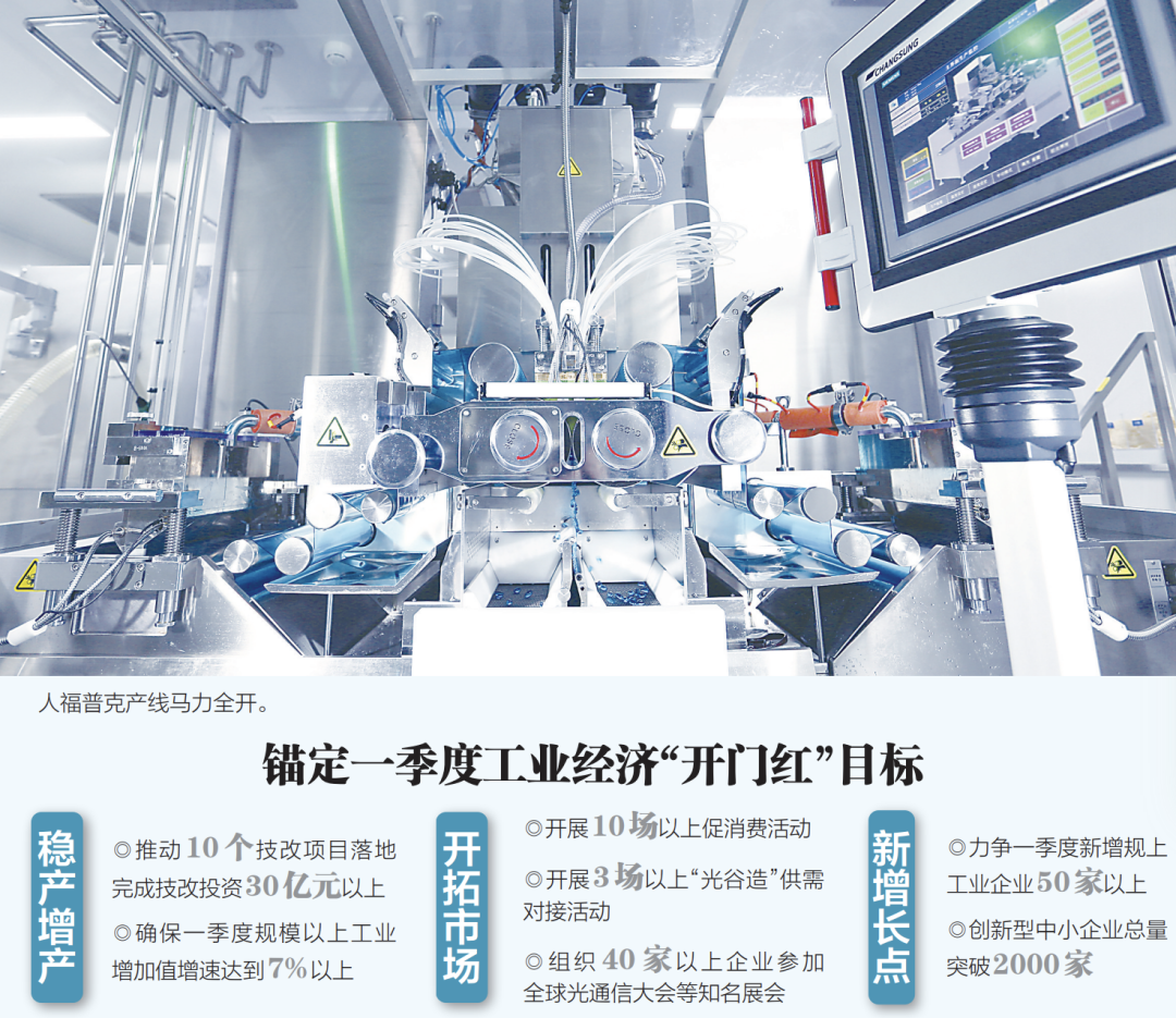 光谷聚焦光电子信息、生命健康优势产业,深入摸排企业市场需求,指导企业抢抓“两新”“两重”等政策窗口,用好用足各类政策,鼓励取得订单、市场的重点工业企业,以及不停产、不能停的龙头企业,抢抓春节期间生产销售旺季,扩大生产规模、提升产能利用率。