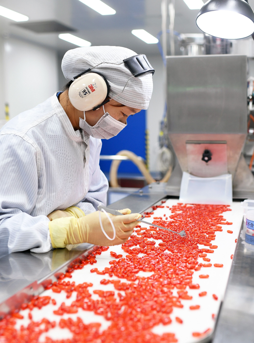 在人福普克产线上有一款金黄色、7oval(橄榄形)大小的胶囊,据企业总经理刘江介绍,这是“二十碳五烯酸乙酯软胶囊”,又名EPA97,是一种被誉为“超级鱼油”的脂质调节剂,能降低重度高甘油三酯血症成年患者的甘油三酯水平。该产品2023年获得了美国食品药品监督管理局的批准文号,订单量持续稳定增长,为开拓国际仿制药市场打下了良好的基础。