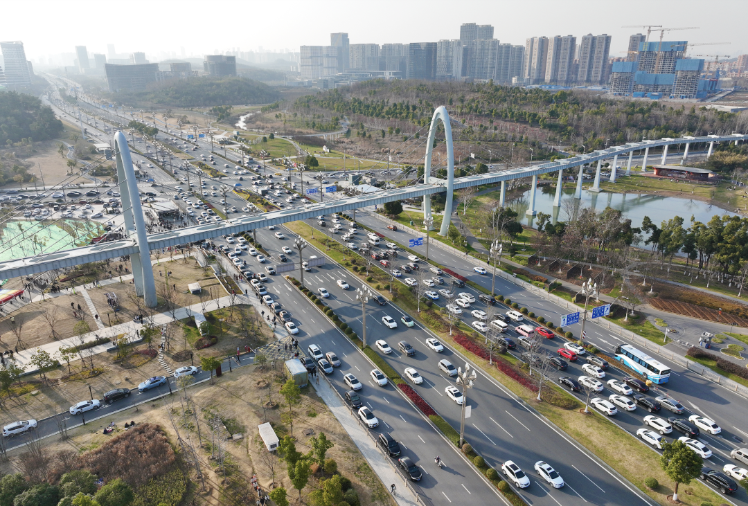 春节期间,高新大道车流如织
