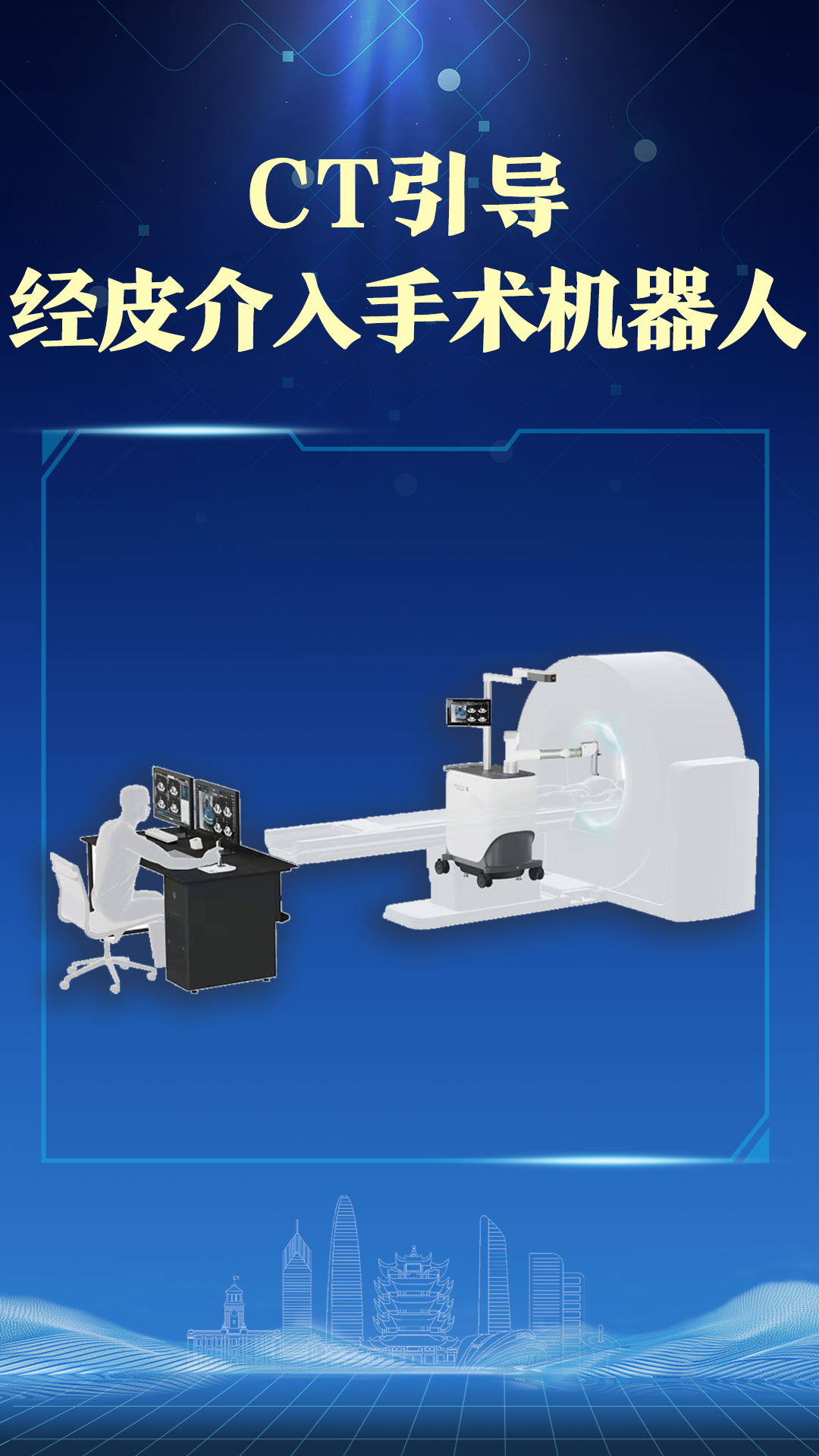 全球首创的经皮介入手术机器人,由联影智融自主研制,以动态CT实时影像引导医生“边看边穿刺 ”,引领经皮介入临床诊疗进入CT“实时可视化”时代。