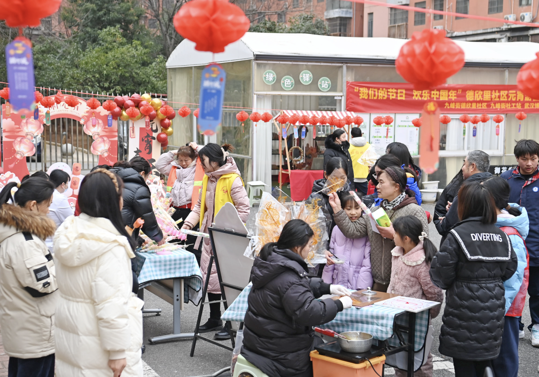 在德欣里、豹子溪、梧桐苑等社区,猜灯谜、包汤圆、非遗糖人等传统项目轮番上阵,小朋友们则热情参与集章打卡、文创集市等趣味活动。