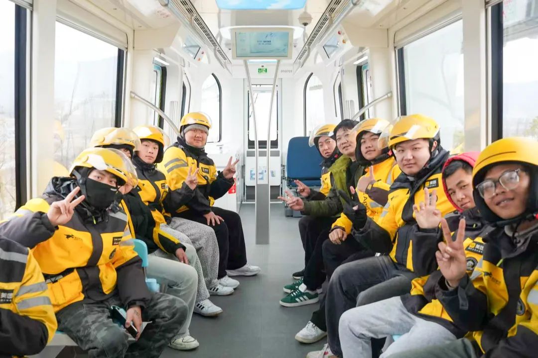 “喜乐元宵 看见光谷”,外卖小哥们一起吃汤圆、猜灯谜、坐空轨,共度美好佳节。