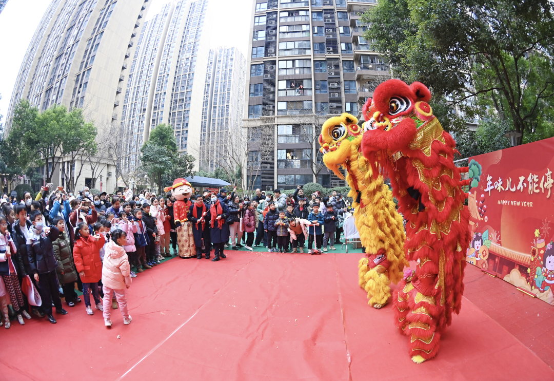 光谷各社区张灯结彩,将节日氛围拉满!威武狮子闪亮登场,绝技频出、神态逼真,引得现场居民情绪高涨、欢呼喝彩不断。