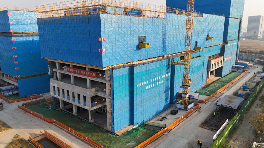 “施工中我们应用了5G塔吊、智能施工电梯、智能喷淋系统等先进设备,一标段比计划提前1个月封顶,建设效率显著提升。”项目相关负责人介绍,目前已进入机电安装和装饰装修施工阶段,正奋力冲刺今年底完工。