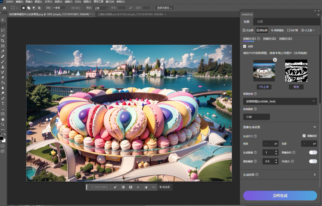 借助智启特PS-AI绘图插件生成的冰淇淋甜品地标