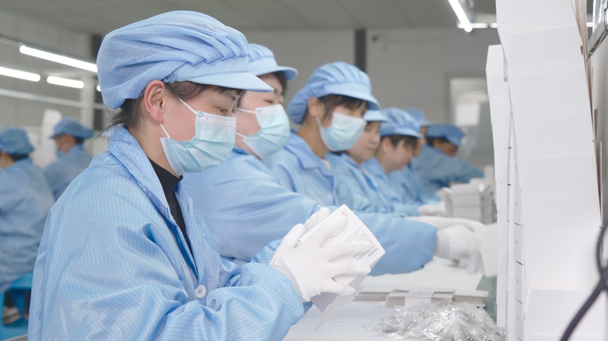 领普科技生产基地内,工人们正在忙碌